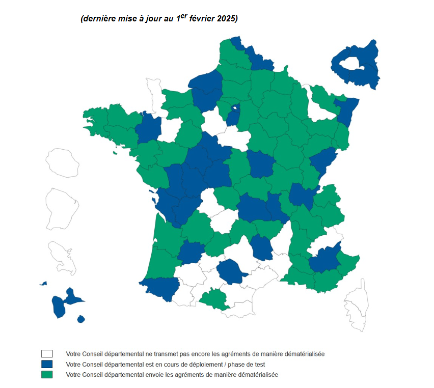 - Procédure en cas de dématérialisation: Si le Conseil départemental communique déjà les agréments de manière dématérialisée l’employeur n’a aucune démarche supplémentaire à effectuer.